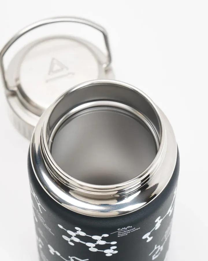 Vier de chemische samenstelling van je favoriete ochtendelixer met deze geïsoleerde drinkfles. Deze thermos bevat niet alleen je kostbare brouwsel, maar dient ook als een visuele herinnering aan de complexe chemische samenstelling die van koffie het drankje maakt waar je naar verlangt.