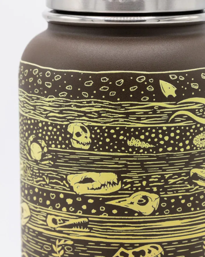 Vul deze drinkfles met je lekkerste brouwsels en geniet van het getextureerd ontwerp voor een unieke tactiele ervaring. Deze nerdy fles houdt je drankje warm of koud totdat je klaar bent om ervan te genieten en licht intussen een tipje van de sluier op van de wondere wereld van de stratigrafie.