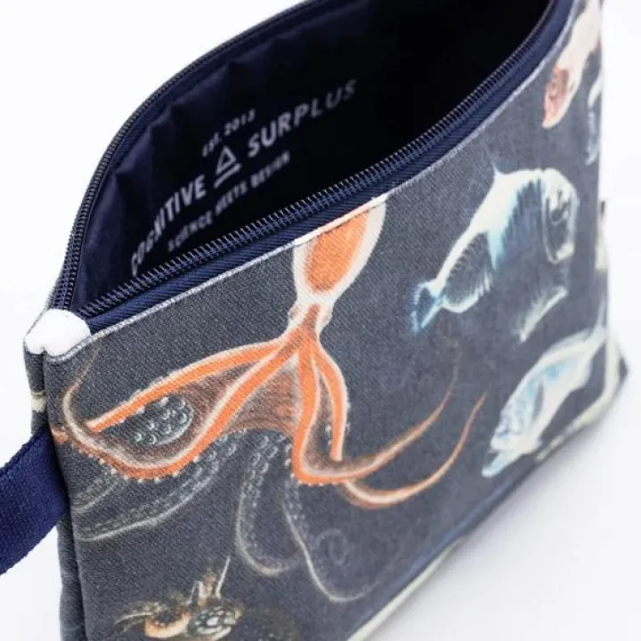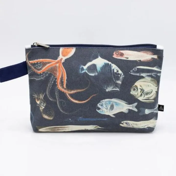 Verken het diepe van de zee en de wonderlijke wezens die daar resideren. Dit tasje is ideaal om je zwembril, zonnecrème, sleutels en zaknotitieboekjes in op te bergen en onderweg verder te vullen met kleine vondsten.