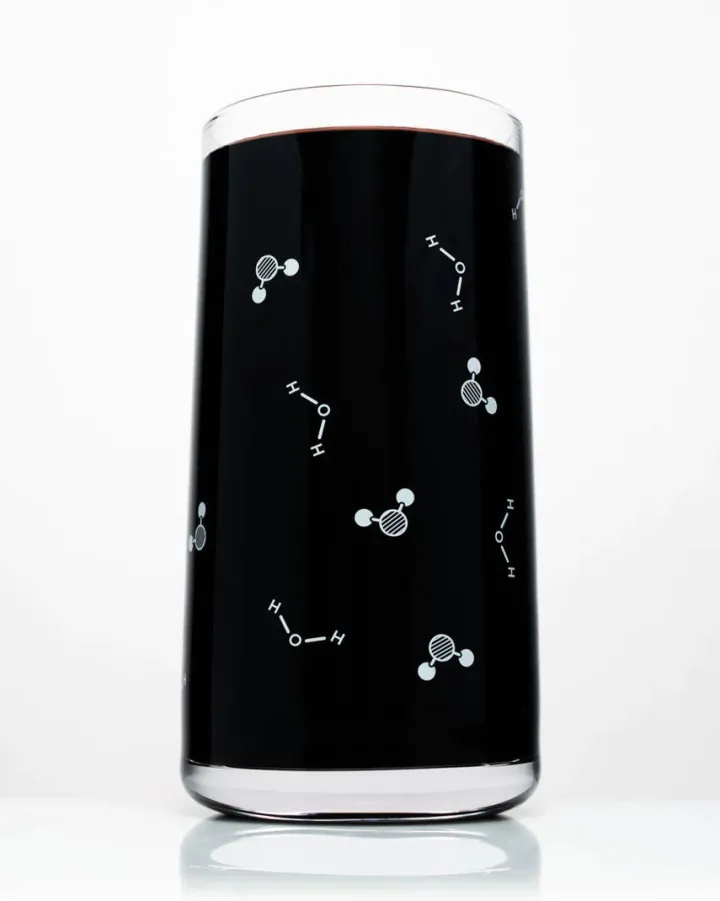 Voeg een geeky touch toe aan je maaltijd met dit glas met watermoleculen.
