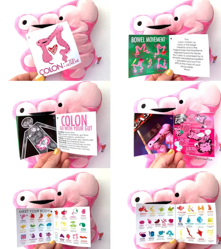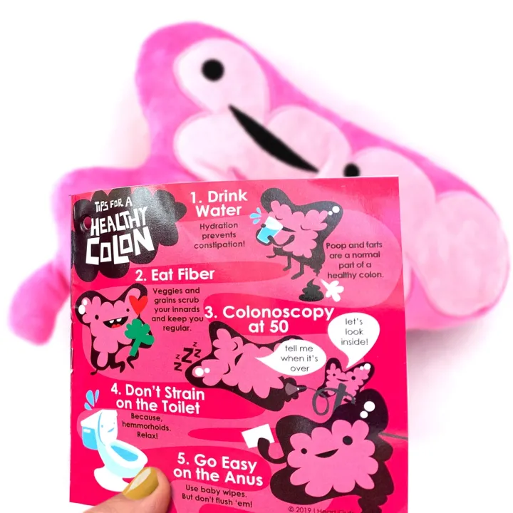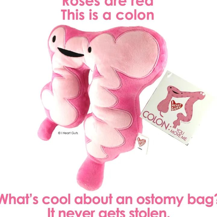Onze superschattige dikkedarmknuffel zorgt voor een glimlach tijdens moeilijke tijden. Deze pluche dikke darm vestigt de aandacht op verschillende ernstige gezondheidsproblemen, waaronder darmkanker, IBD, IBS, de ziekte van Crohn, colitis en stomazorg, enz. Het knuffelen van deze dikke darm na een operatie of colostomie verwarmt harten in het ziekenhuis. Een geweldig cadeau voor je gastro-enteroloog, colorectale chirurg, gastro-enterologie-studenten, hoogleraren geneeskunde, pleitbezorgers voor bewustwording van darmkanker en diëtisten. Je zult het geweldig vinden om een dikke darm kussen te hebben om te knuffelen of zelfs om te slaan als je wilt.