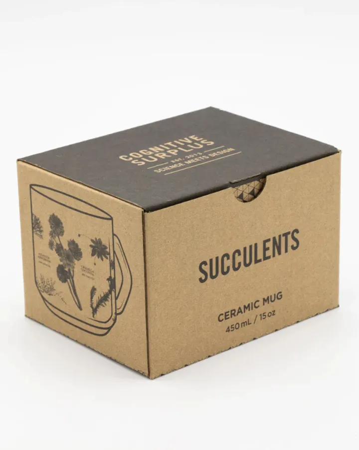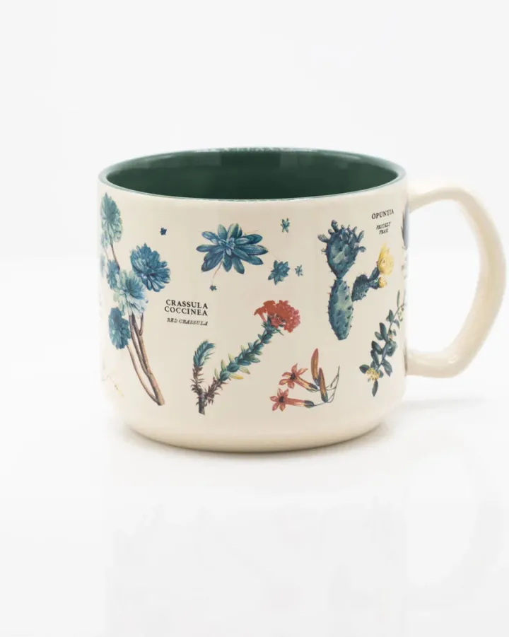 Als je op zoek bent naar de perfecte mok om je liefde voor vetplanten te laten zien, eindigt je zoektocht hier. Met kleurenillustraties van enkele van je favoriete laagwaterplanten en een heerlijk cactuskleurige pop-color binnenkant, is dit de mok waar je naar verlangt. Vul hem met je favoriete warme drank en geniet ervan terwijl je je kamerplanten verzorgt.
