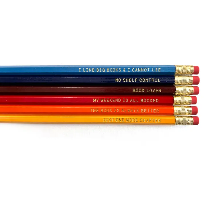 Set van 6 witty potloden met volgende opdrukken in goudfolie: