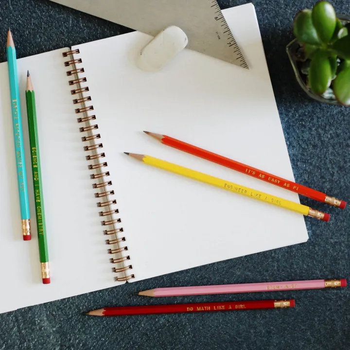 Set van 6 witty potloden met volgende opdrukken in goudfolie: