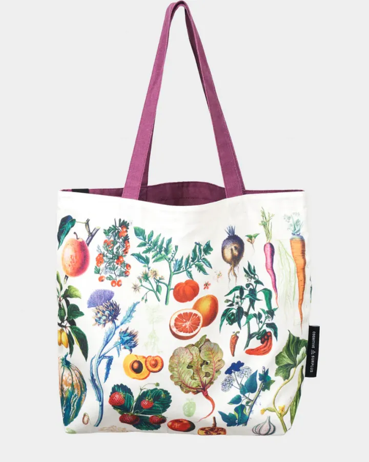 Met deze schoudertas met vintage illustraties van je favoriete fruit en groenten, ben je klaar om de boerenmarkt te trotseren!