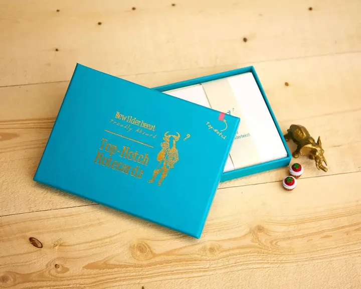 Set van 10 kaartjes (2 van elke print) met envelop. Verpakt in een mooi luxueus doosje. Te gebruiken als notitiekaartjes, bedankkaartjes, …