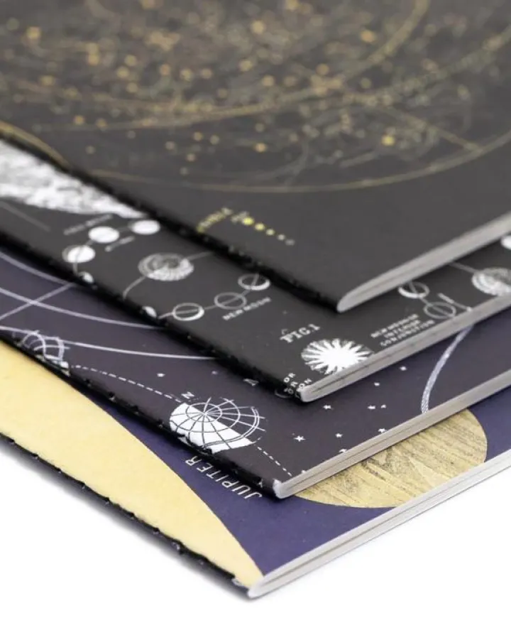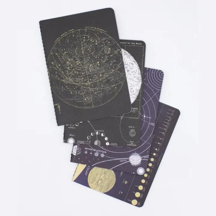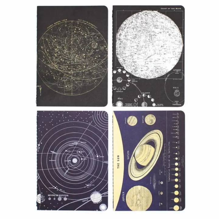 Hou de stand van diverse hemellichamen bij of schets de verschillende maankraters. Dit pakket bevat 4 notitieboekjes met verschillende astronomiecovers en verschillende types pagina’s. Altijd het juiste boekje voor jouw project van de dag.