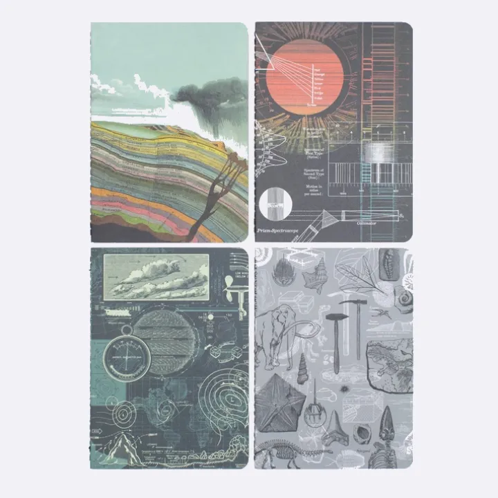 Laat je inspireren door je laatste bezoek aan het natuurhistorisch museum en deze wetenschappelijke notitieboekjes. Dit pakket bevat 4 notitieboekjes met verschillende wetenschappelijke covers en verschillende types pagina’s. Altijd het juiste boekje voor jouw project van de dag.