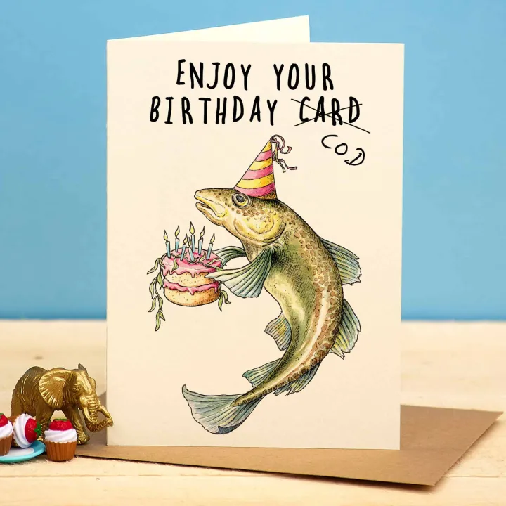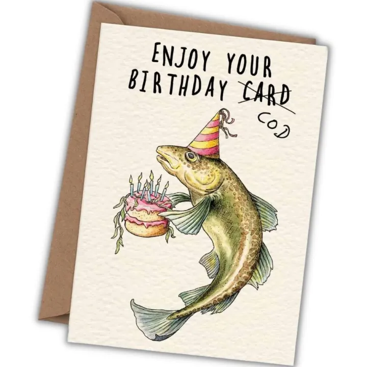 Wenskaart kabeljauw "Enjoy your birthday cod"
