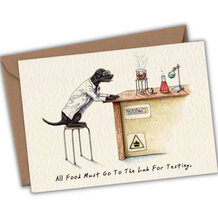 Tover een lach op het gezicht van je favoriete lunch- of labopartner met dit leuke kaartje.