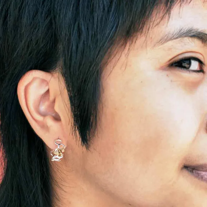 Zilveren oorbellen met honingraat en bronzen bij