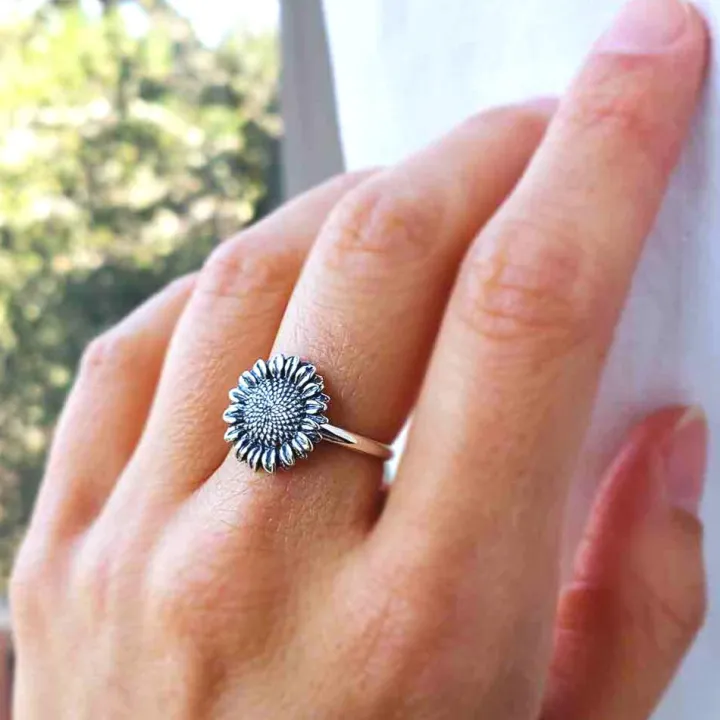 Toon je liefde voor de natuur met deze fijngedetailleerde zonnebloemring.