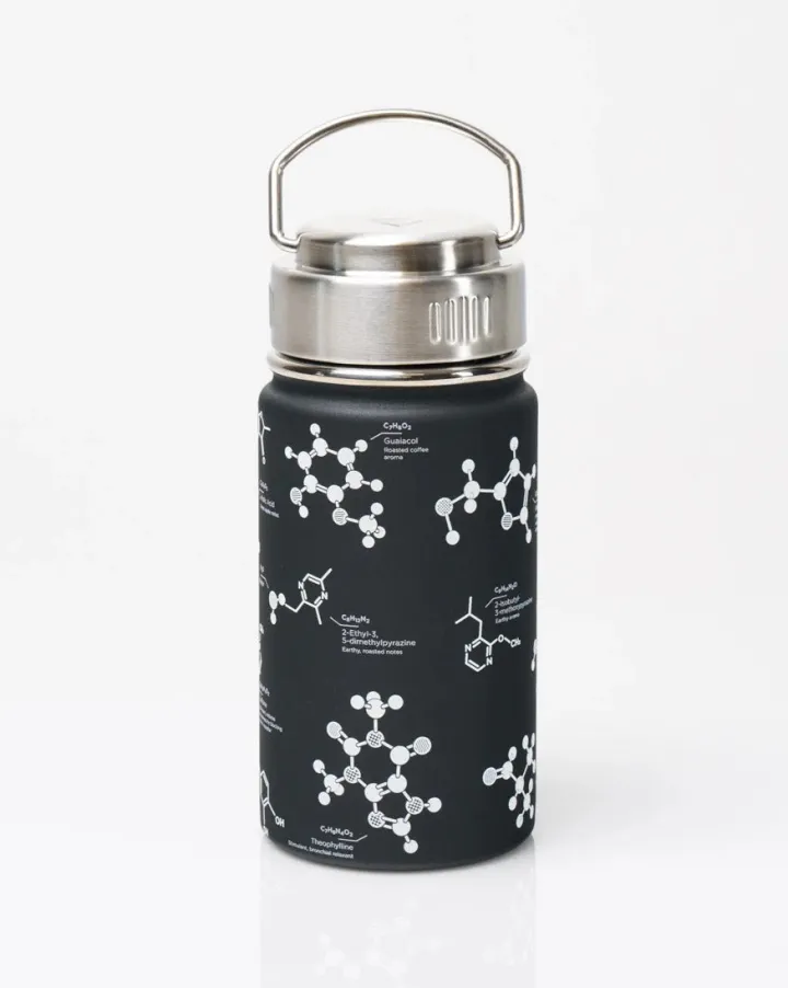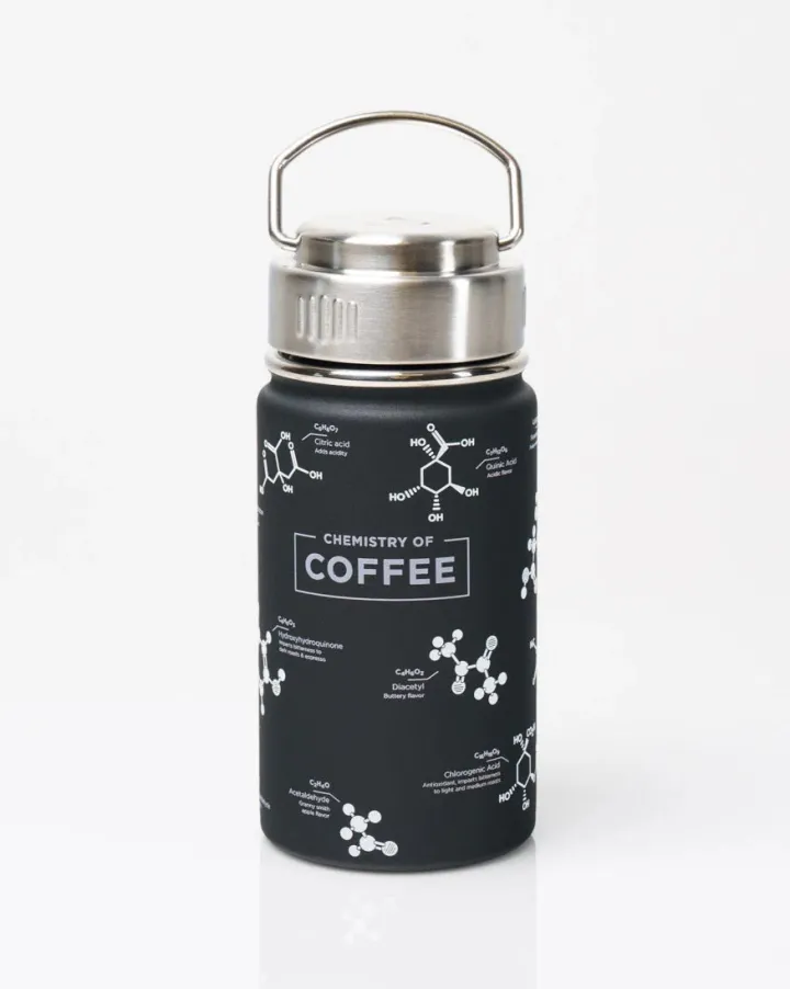 Vier de chemische samenstelling van je favoriete ochtendelixer met deze geïsoleerde drinkfles. Deze thermos bevat niet alleen je kostbare brouwsel, maar dient ook als een visuele herinnering aan de complexe chemische samenstelling die van koffie het drankje maakt waar je naar verlangt.