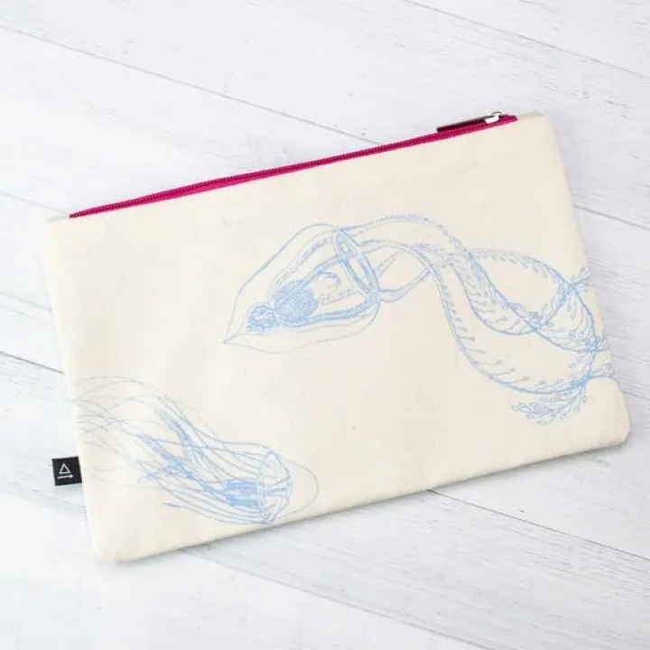 Neem je teken- en schrijfgerei mee in deze kwallenetui en laat je inspireren tijdens een verblijf of veldwerk aan de kust. Verdwaal in de tentakels van een van de meest betoverende wezens van de oceaan.