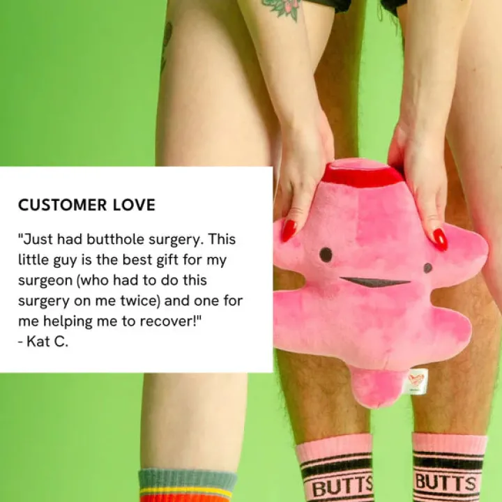 Fleur je huis, je lessen of je praktijk op met deze leuke rectumknuffel of geef hem als troostcadeautje bij ziekte of een operatie.
