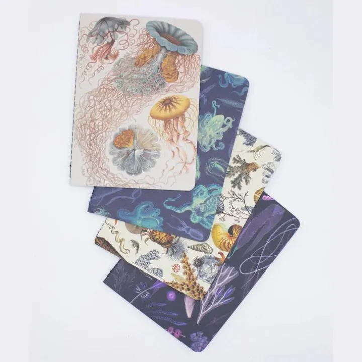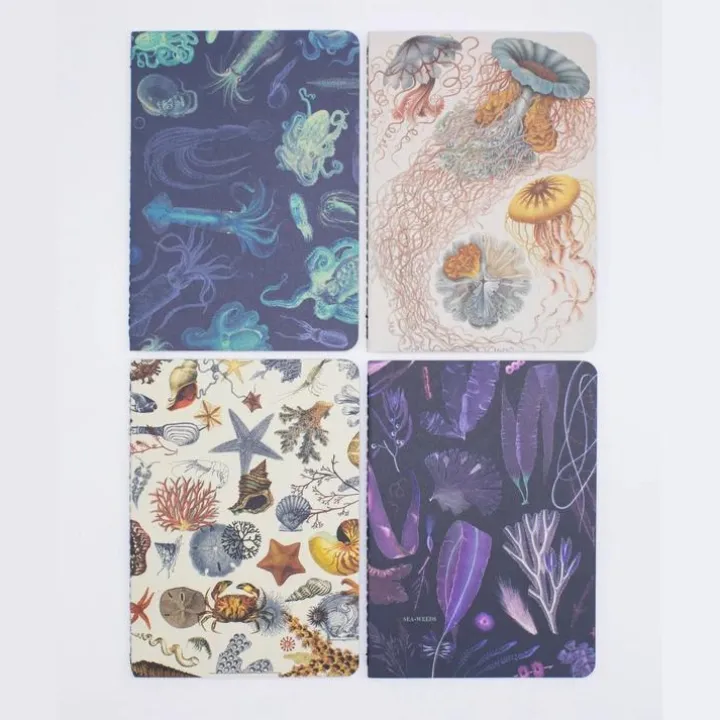 Houd de stand van de getijden bij, inventariseer je aangespoelde vondsten of noteer je gedachten terwijl je luistert naar de golven. Dit pakket bevat 4 notitieboekjes met verschillende oceaancovers en verschillende types pagina’s. Altijd het juiste boekje voor jouw project van de dag.