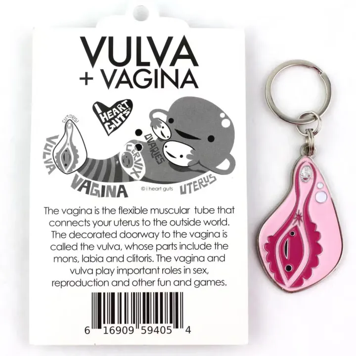 Voeg een nerdy touch toe aan je sleutelbos met deze anatomische sleutelhanger, vraag aandacht voor period poverty of laat je gewoon vergezellen door deze vrolijke vulva met glitterend clitorisgezicht!
