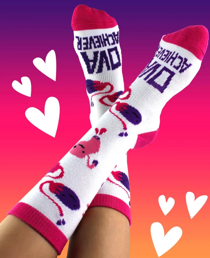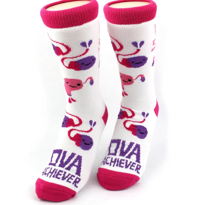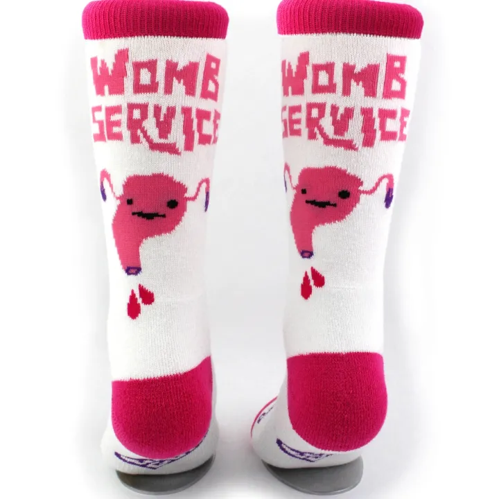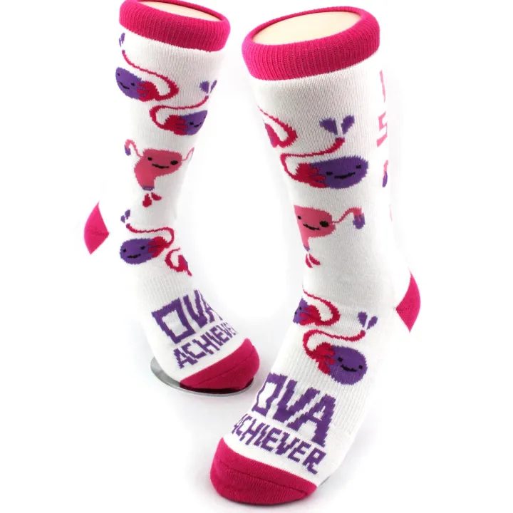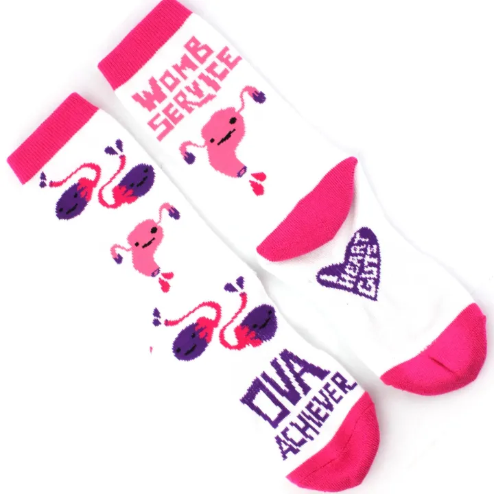 Met “ova achiever” aan de voorkant en “womb service” aan de achterkant, zul je iedereen op gynaecologie-afdeling jaloers maken. Superzachte sportcrew-sokken van bamboeviscose zullen je voeten omhelzen zoals alleen een baarmoeder dat kan.