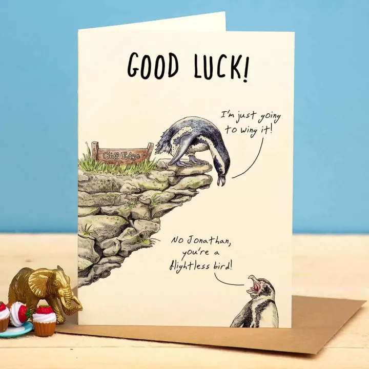 Wenskaart pinguïn “Good Luck”