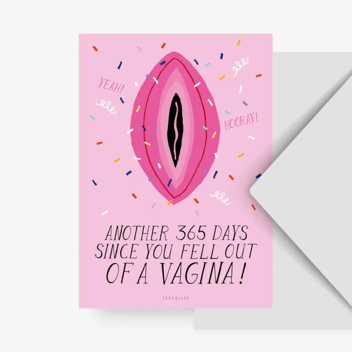 Wenskaart verjaardag "fell out of a vagina"