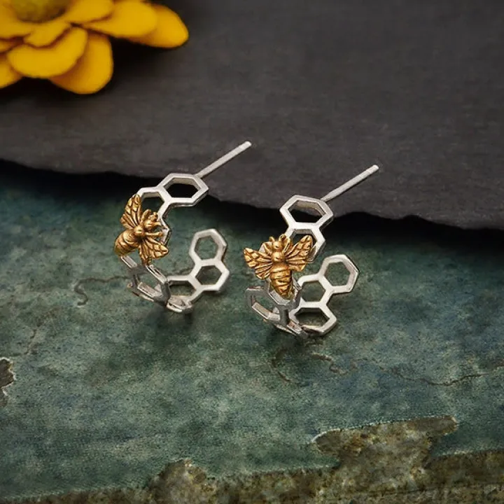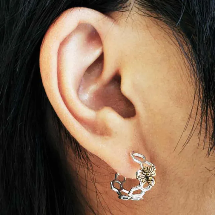 Zilveren oorbellen met honingraat en bronzen bij