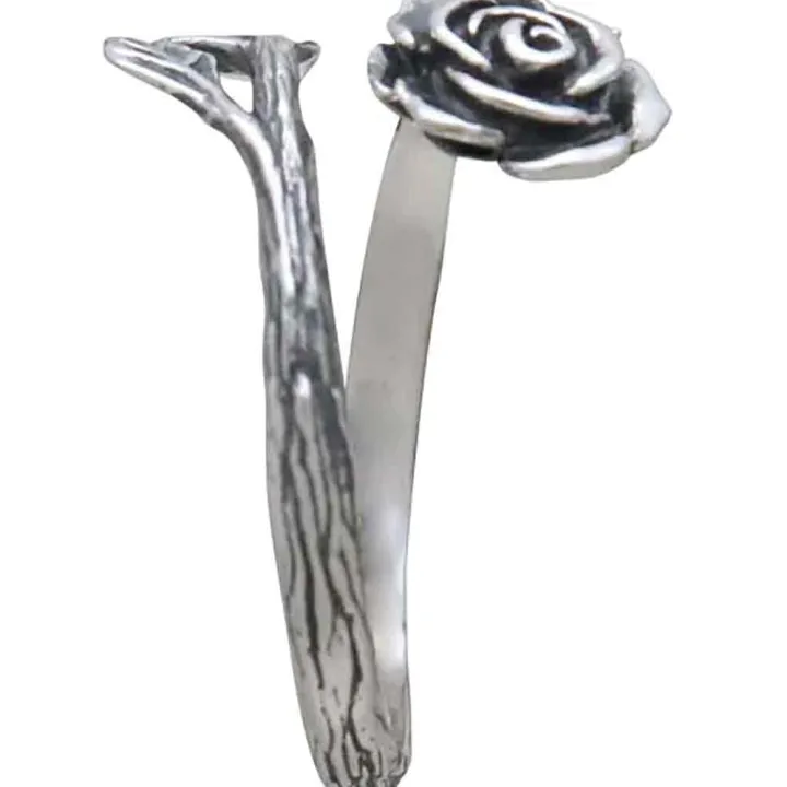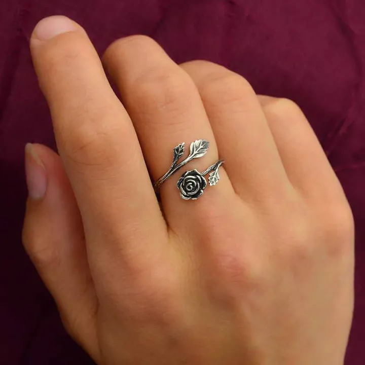Deze verstelbare en fijne gedetailleerde zilveren ring met roos is een ideaal geschenk voor biologen en natuurliefhebbers.